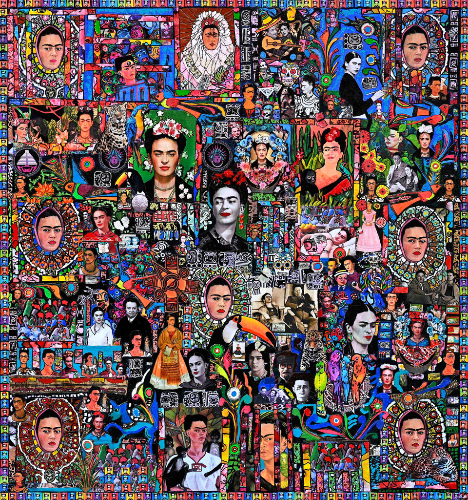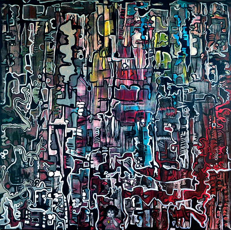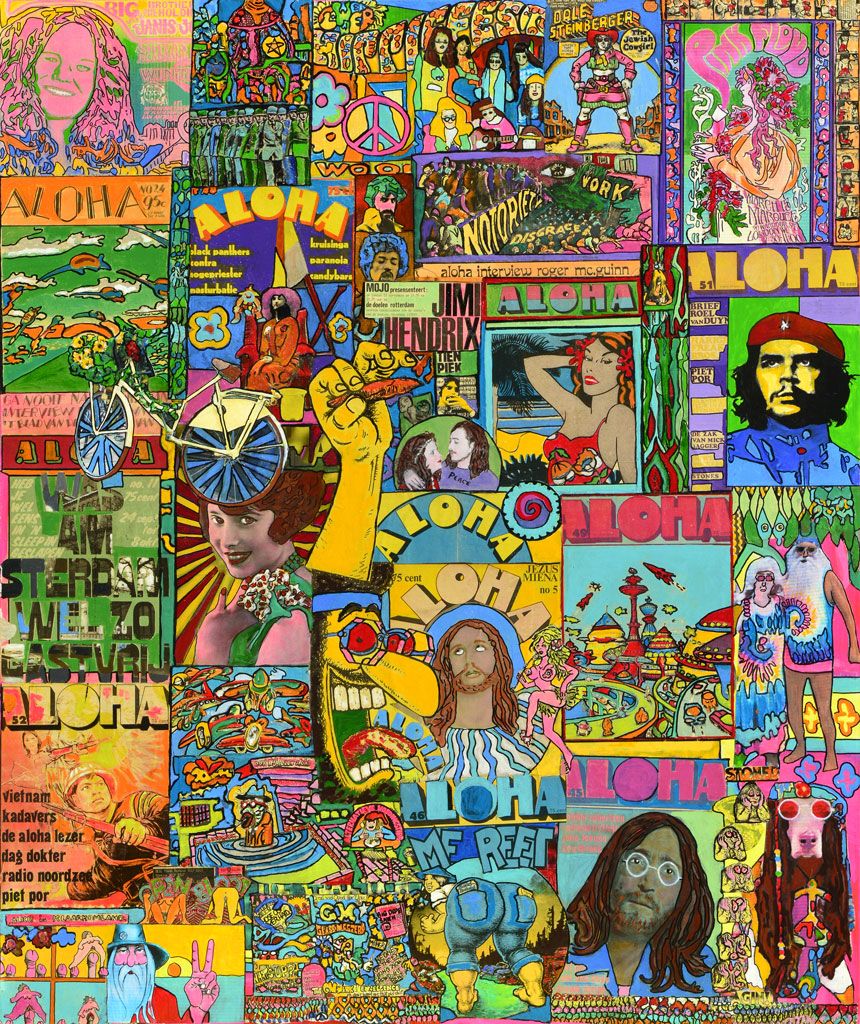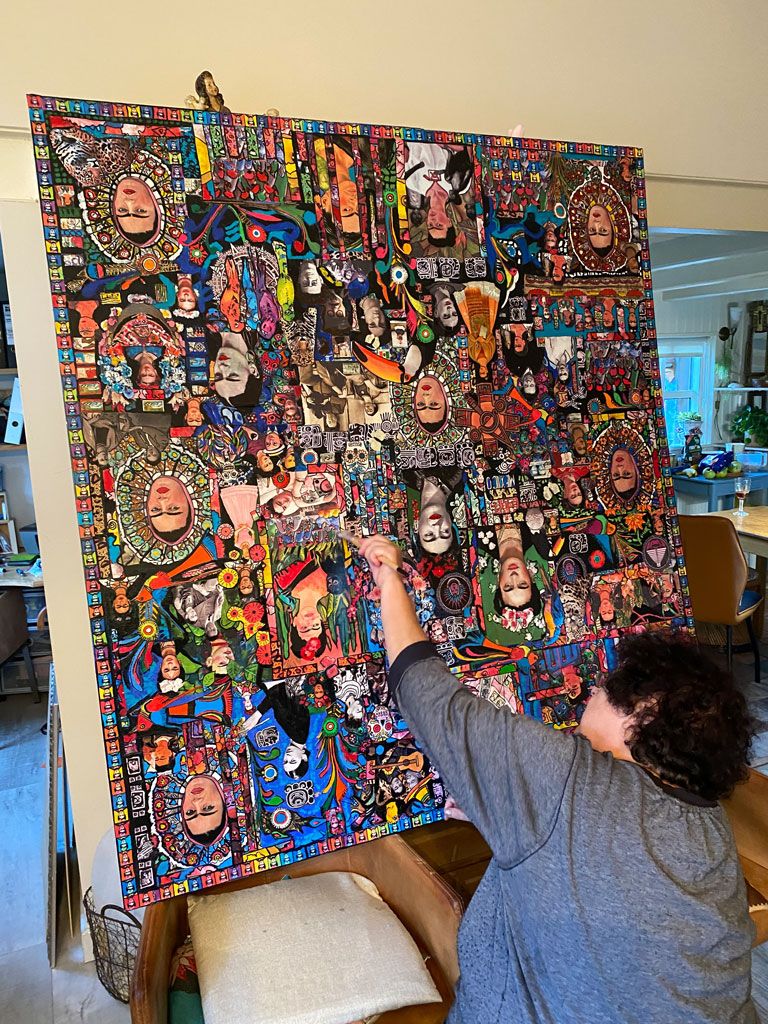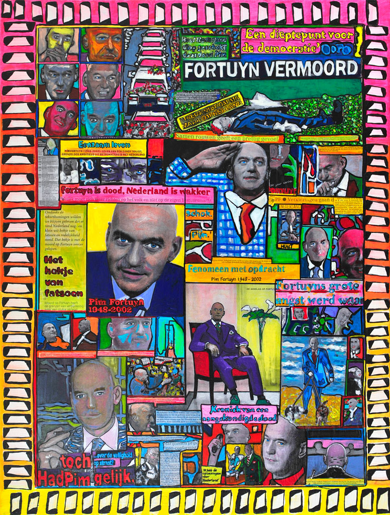 Het complete werk is 390 x 150cm groot. Acryl op doek.