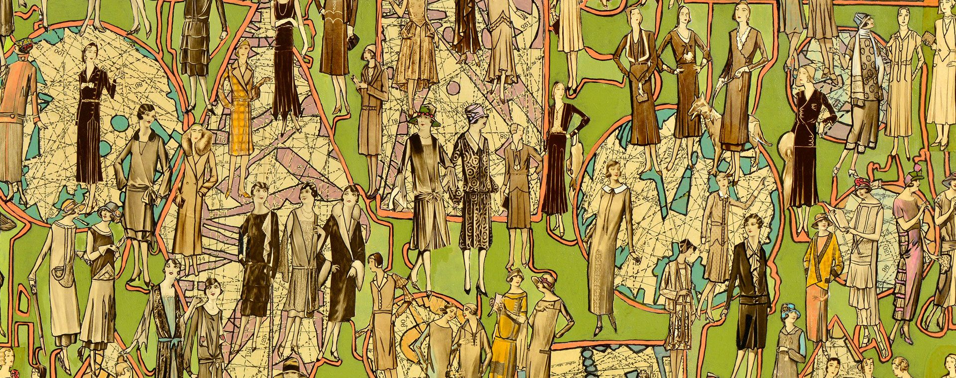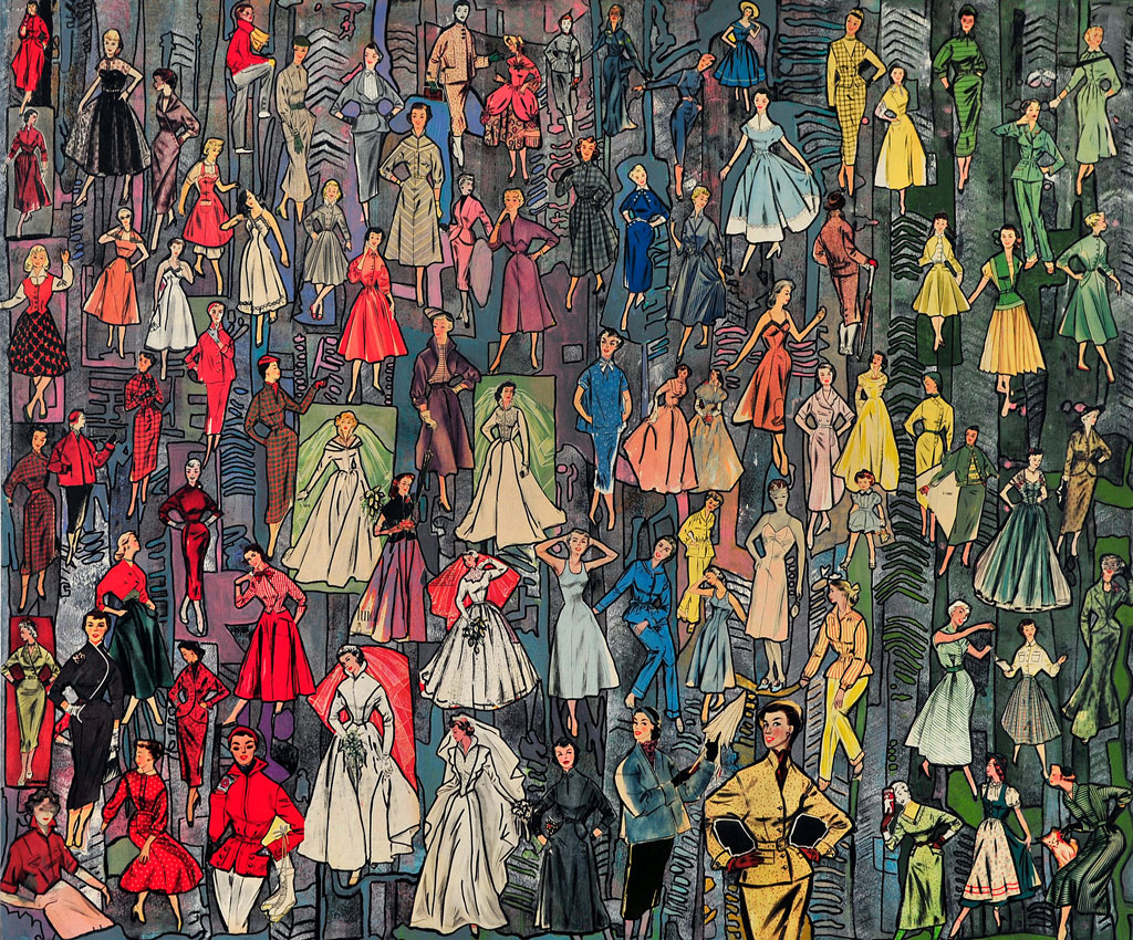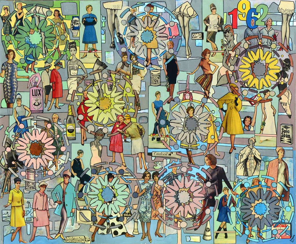 Sie hat eine Reihe von Collagen mit dem Thema "Mode aus vergangenen Jahren" erstellt.