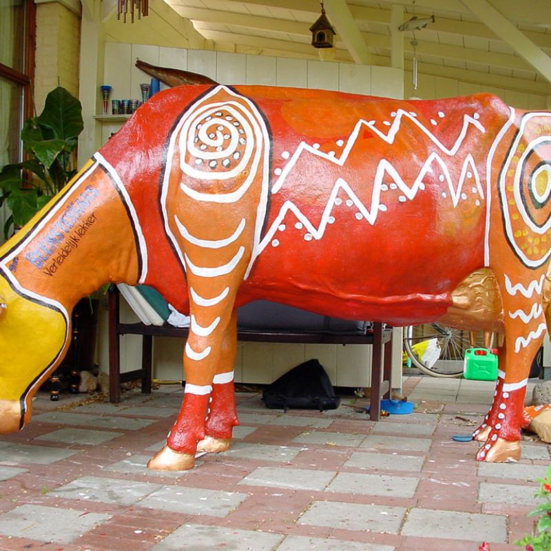 Wanneer ze een bevlieging heeft decoreert ze een stoel, tafel of een polyester koe
