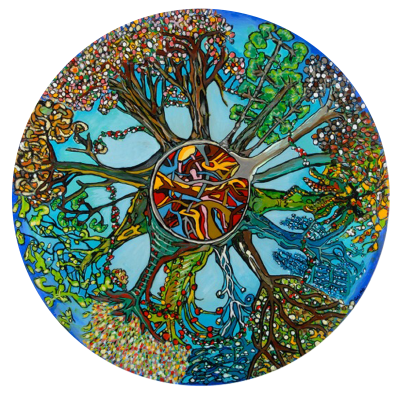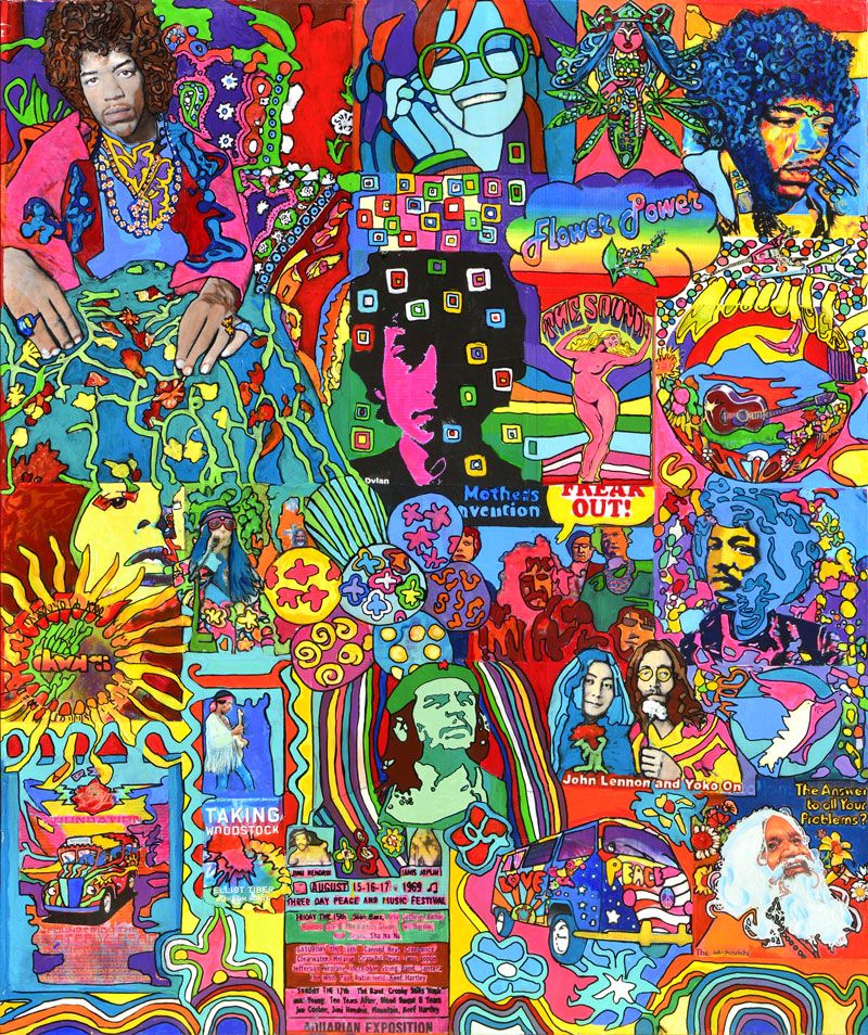 Het midden stuk is 290 x 150cm groot. Acryl op doek.