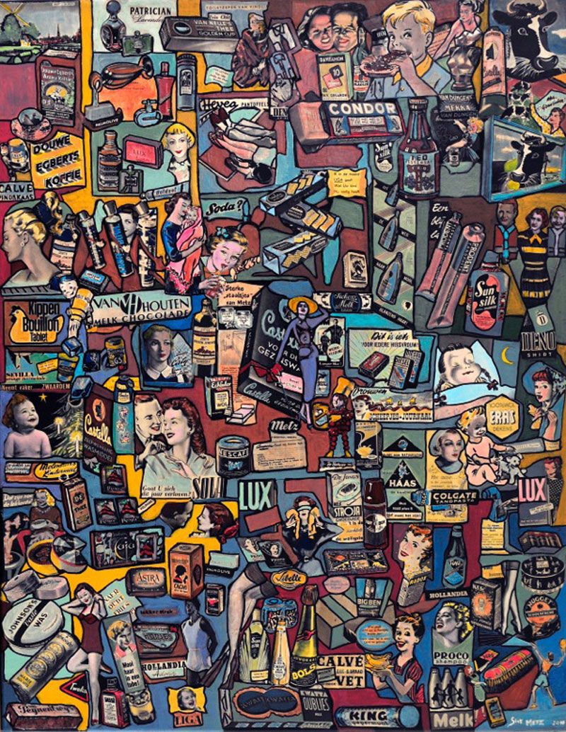 Andere onderwerpen: reclame, natuur, hippietijd en de Tweede Wereldoorlog en wanneer ze een bevlieging heeft decoreert ze een stoel, tafel of een polyester koe.
